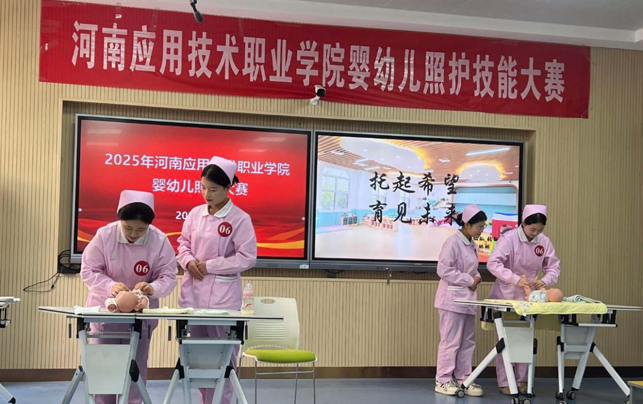 为深入贯彻《国家职业教育改革实施方案》精神,强化职业教育“以赛促学、以赛促教、以赛促改”的核心导向,2025年10月30日,河南应用技术职业学院2025年婴幼儿照护技能大赛在康养护理学院实训中心隆重举行。