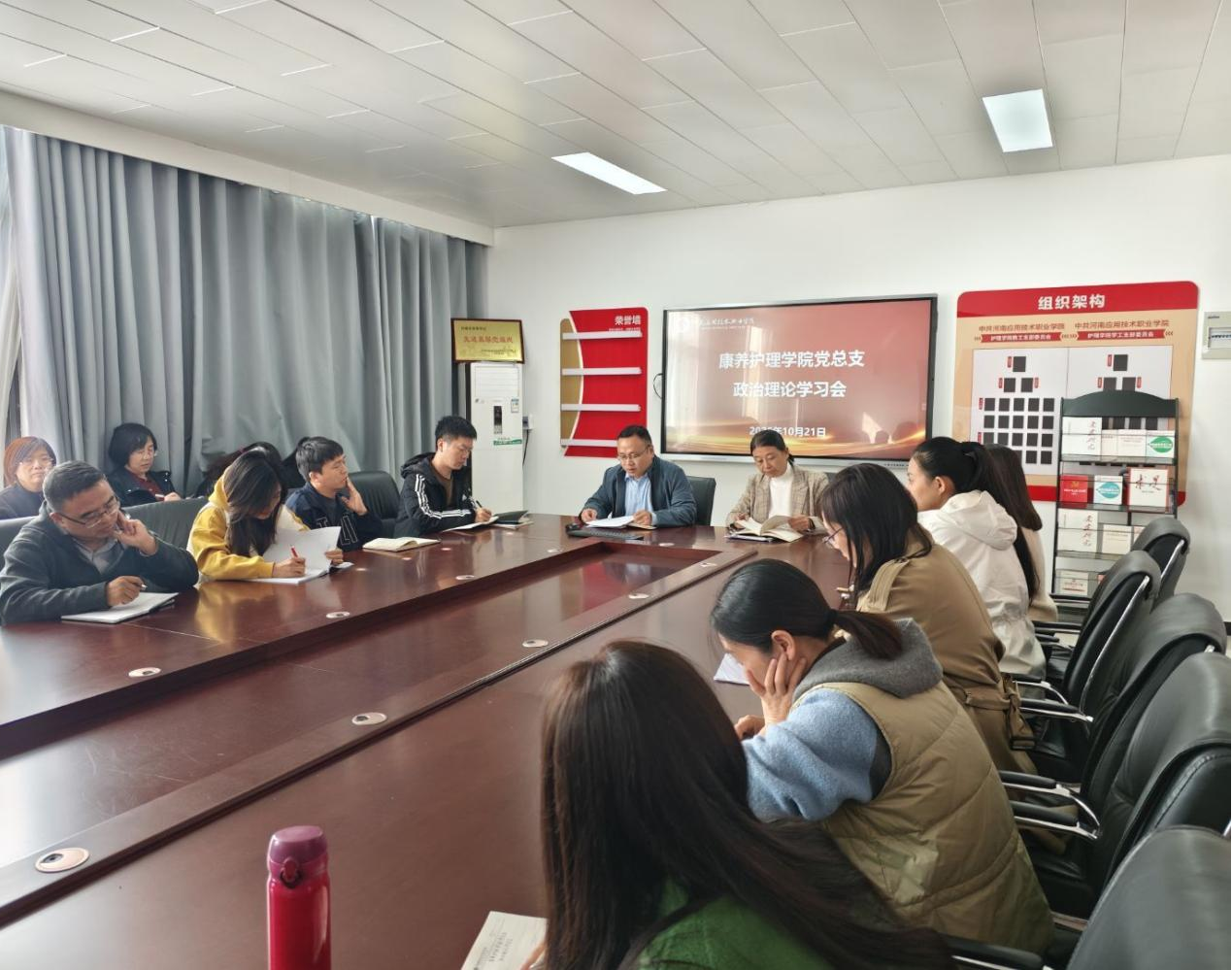 10月21日下午,康养护理学院全体教职工在办公楼515会议室开展了政治理论学习活动。此次学习活动由学院党总支书记张忠勇主持,通过集中研学、理论阐释与交流研讨相结合的方式,深入学习《习近平谈治国理政》第五卷核心内容,推动教职工政治素养与业务能力双提升。