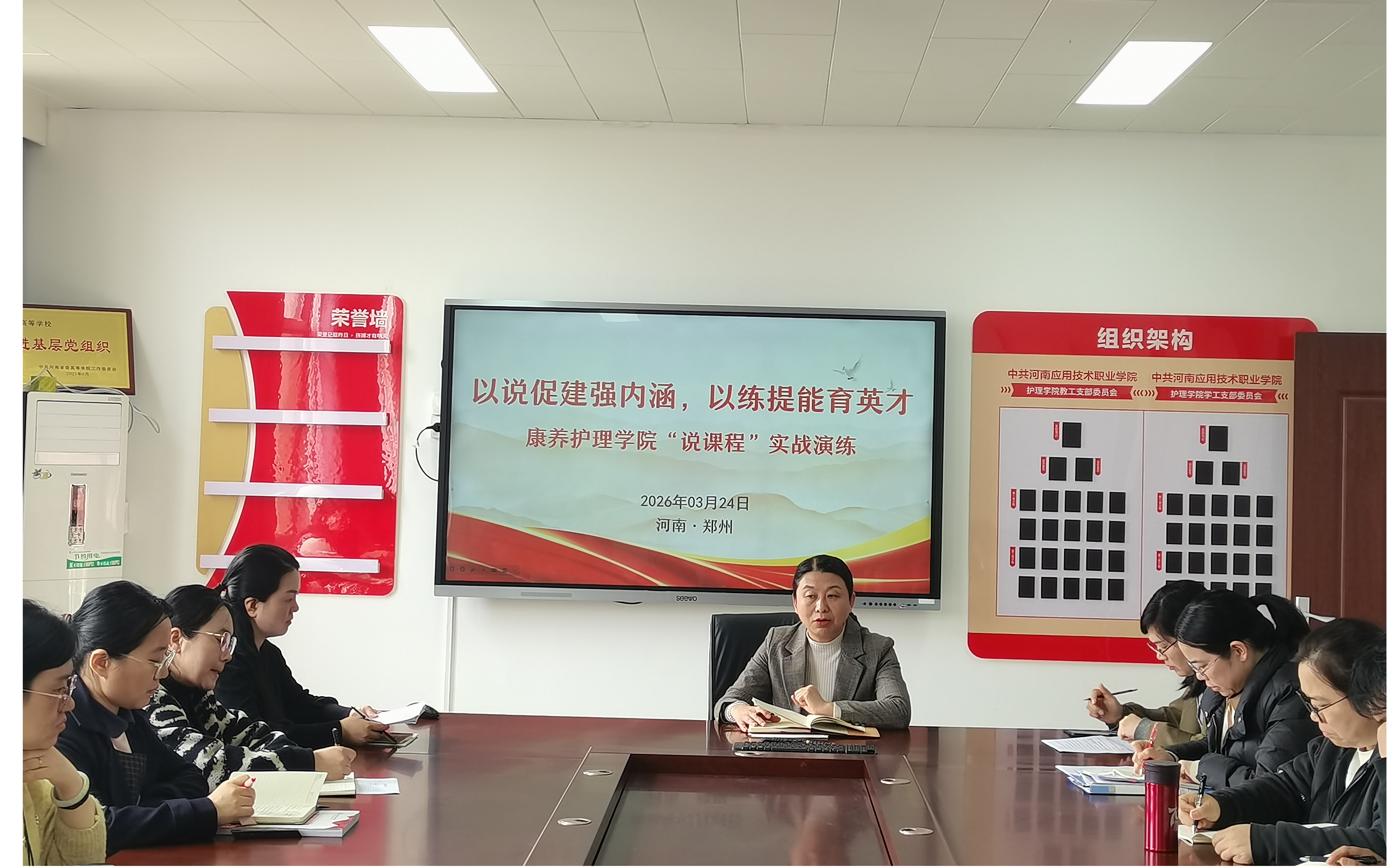 为稳步推进学校办学能力评价筹备工作,全面提升教师教学能力与课程建设水平,3月24日,康养护理学院在办公楼515会议室举行“说课程”研讨活动。此次活动由康养护理学院院长王风云主持,全体专兼职教师积极参与,共同营造了一场教学相长、互促共进的教研盛宴。