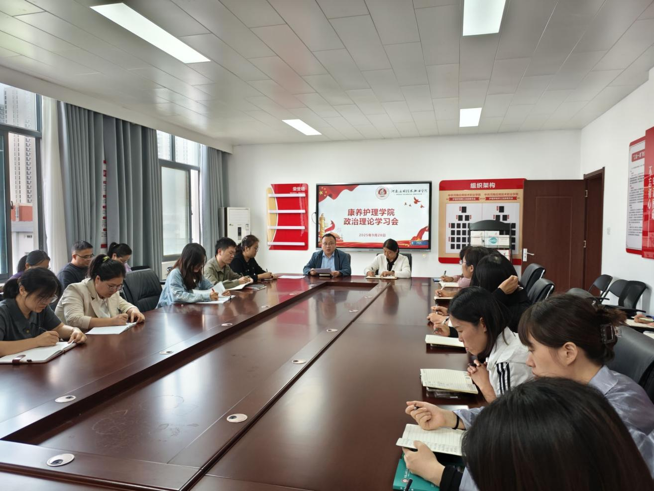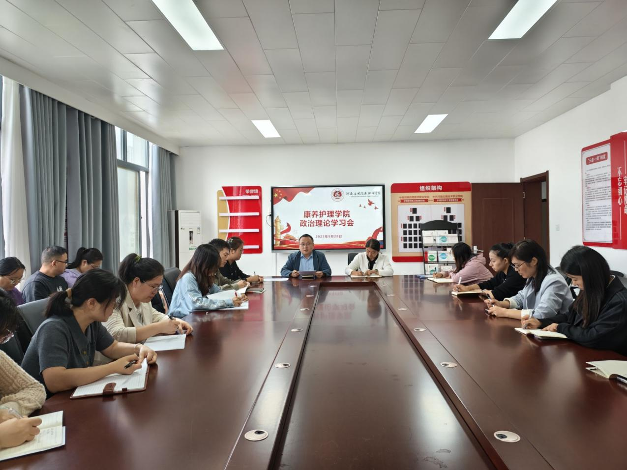 9月28日下午,康养护理学院全体教职工在办公楼515会议室,开展了政治理论学习活动。此次学习活动由学院党总支书记张忠勇主持,旨在通过深入学习党的最新理论成果,进一步提升教职工的政治素养和理论水平,为学院发展注入新的思想动力。