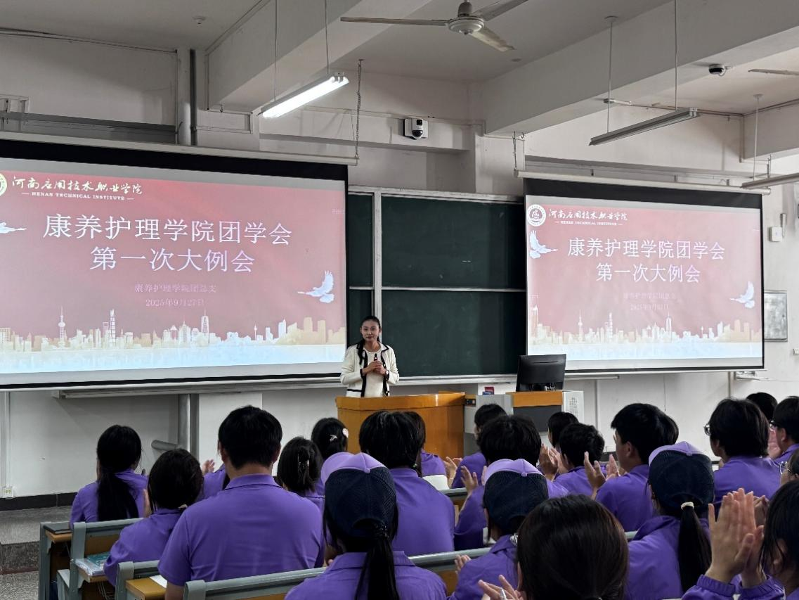 2025年9月29日中午,康养护理学院团学会在教C102召开新学期第一次大例会,会议由康养护理学院团总支书记张萌主持,团学会全体成员参加会议。