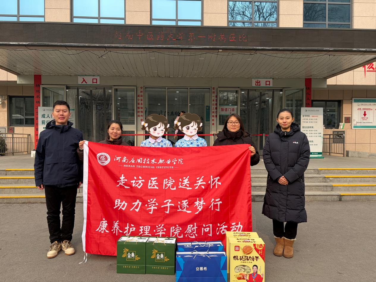 为深入贯彻落实立德树人根本任务,切实关心关爱实习阶段家庭经济困难学生的学习生活与职业发展,2026年1月27日,康养护理学院教师团队在党总支书记张忠勇、院长王风云的带领下分赴郑州大学第二、第三附属医院、郑州市第三人民医院、郑州市中心医院、河南中医药大学第一附属医院等多所三甲医院,开展走访慰问岗位实习贫困生活动,将学院的温暖与牵挂精准送达。