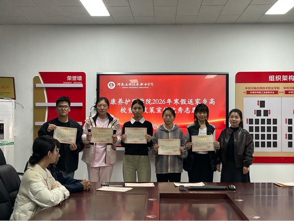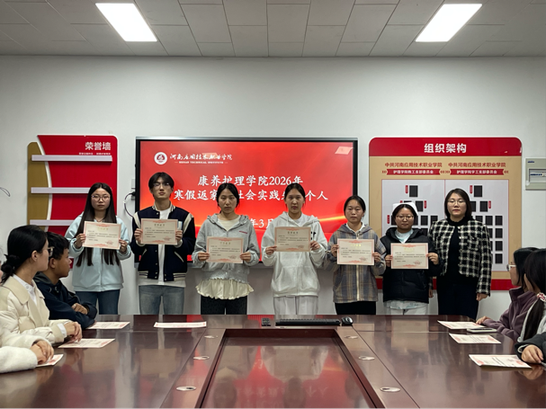 最后三位老师为先进个人颁发荣誉证书,此次表彰大会既是对寒假“返家乡” 社会实践工作的全面总结,更是对全院学子投身实践、服务社会的有力动员。未来,康养护理学院将继续以实践育人为抓手,引导青年学子在服务家乡、奉献社会的广阔天地中锤炼品格、增长本领,以青春之我、担时代之责,书写新时代青年的奋进篇章。