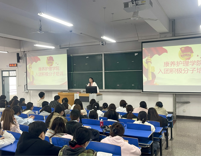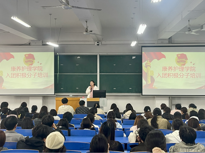 为深入学习贯彻新时代党的青年工作思想,加强入团积极分子思想淬炼和理论武装,3月24日,康养护理学院于教学楼 C301 教室开展入团积极分子专题团课培训。学院团总支书记张萌以 “深学团章守初心 挺膺担当向未来”为主题授课,全体入团积极分子参训。