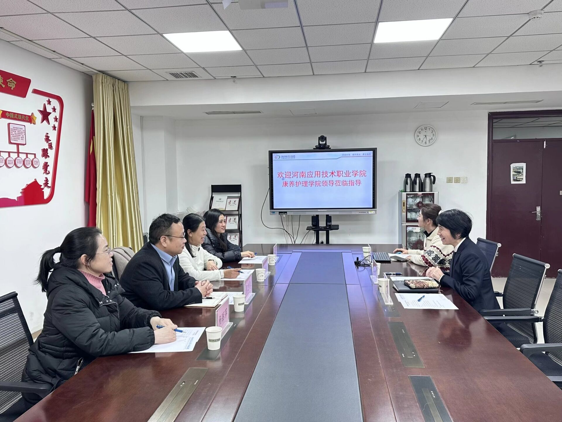 为深化校企合作、拓展就业渠道,全面了解学生实习情况,加强实习过程管理,1月27日,河南应用技术职业学院康养护理学院党总支书记张忠勇、院长王风云带领实习指导教师团队赴河南中医药大学第三附属医院开展访企拓岗专项行动,并与医院护理部主任张晓黎、实习生专职管理人员马明睿等进行座谈交流,实地走访看望在岗实习学生。